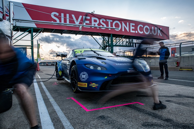 As the first stint continued, eyes were on Glynn Geddie in the #7 Team Parker Racing, coming from the back of the GT3 grid, to run third by lap 15. Shaun Balfe had excited the fans after an exceptional overtake into The Loop, but was having a harder time passing Graham Davidson’s #47 Aston Martin for the overall lead as the race passed half distance. Balfe Motorsport blinked first. Overshooting his box, plus the success ballast from Snetterton looked to doom the team, but took advantage later as AM driver Graham Davidson remained in the car for an extended period of time, allowing Rob Bell to overtake when the #47 fed back out.