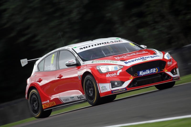 Thanks to a sterling effort in Saturday’s qualifying session, Rory Butcher lined his Motorbase Ford Focus up on pole for the weekend’s opener. However, with rain pouring down on the track, and the start delayed due to Carl Boardley’s green flag crash, the Scot would face many a challenge if he were to win the race.