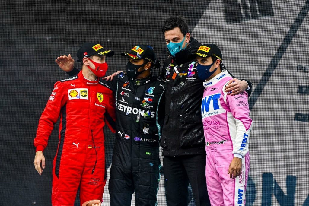Sergio Perez finished second, holding off a late charge from Charles Leclerc who made a mistake with three corners to go.