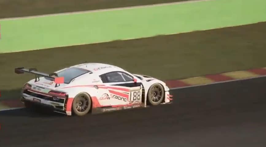 Hillebrand, meanwhile, had an off-track moment at Radillon that dropped the German driver down to 11th and promoted Pareras in the Phoenix Racing Audi back into second. Luigi Di Lorenzo in the Modena Kart ASD Aston Martin Vantage GT3 was third, just under two and a half seconds behind the Spaniard. Hillebrand later reported via chat that his car ‘randomly lost grip at the rear’.