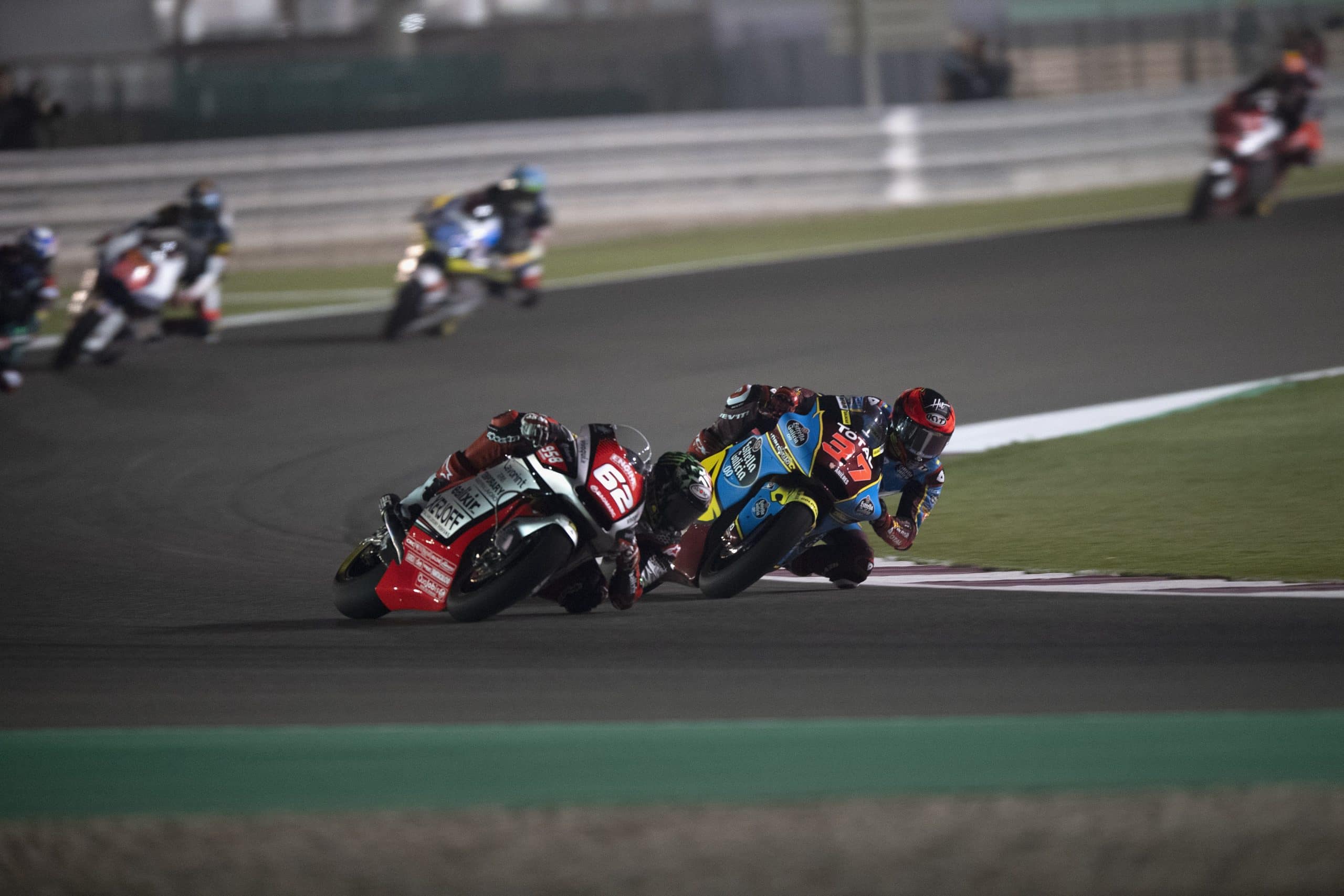 Dutchman Bo Bendsneyder came home eleventh with Sky VR46’s Marco Bezzecchi leading Fabio Di Giannantonio, Jake Dixon, who after a final corner divebomb on early leader Luca Marini grabbed fourteenth. The contact between the two riders forced Marini to part ways with his Sky VR46 Kalex meaning Valentino Rossi’s half brother leaves Qatar empty-handed. Fellow VR46 academy rider Stefano Manzi claimed the final World Championship point of the 2020 season opener.