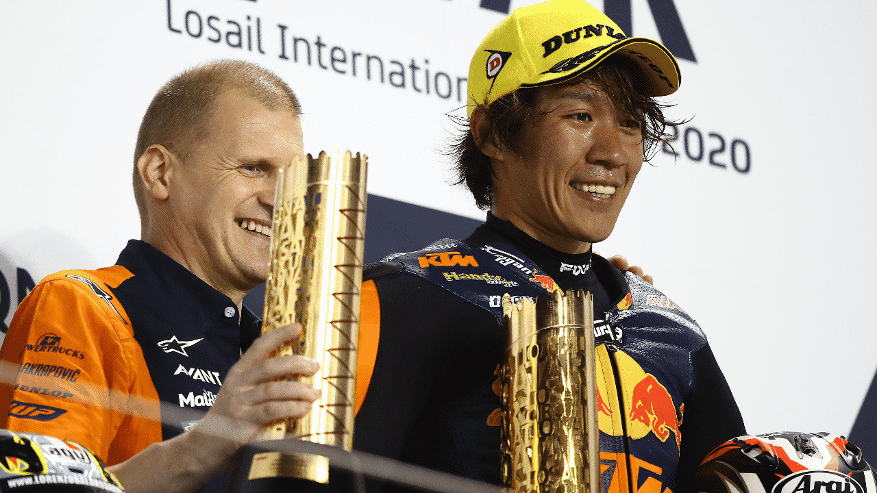 Red Bull KTM AJO rider Tetsuta Nagashima stunned the Moto2 field in the opening round of the 2020 season, taking his maiden Moto2 victory in his debut with the team. It was an emotional victory for the Japanese rider, ten-years earlier his good friend, the late Shoya Tomizawa, stood on the top step as the first-ever Moto2 winner.