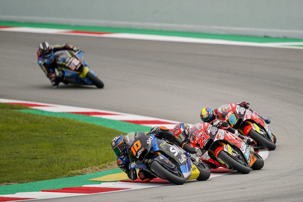 Luca Marini leads Fabio Di Giannantonio, Jorge Navarro and Sam Lowes, 2020 Catalan GP. Credit: Milagro/Monster Energy.