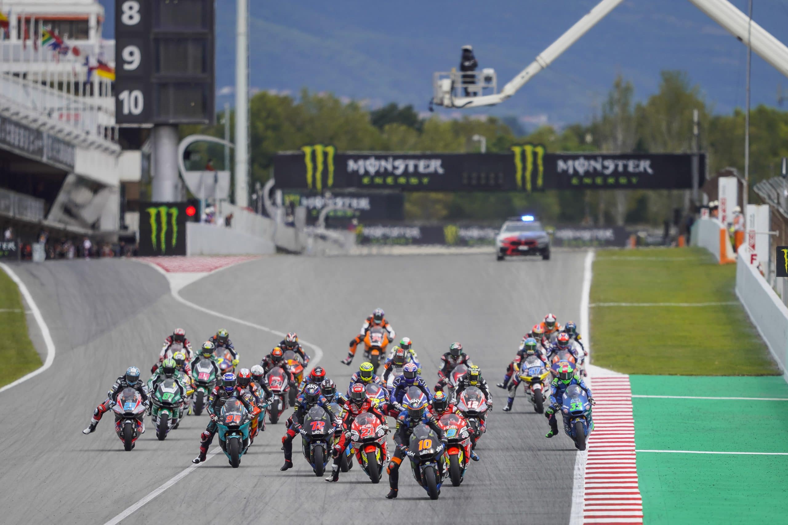 The start of the race was one of the most bizarre and amateur things to be seen in World Championship motorcycle racing. Joe Roberts had problems on the grid, meaning he was late to depart for the warm up lap. His pole position was forfeited and he should have started from the back of the grid. The rest of the field arrived on the grid while Roberts was in the final sector of the lap, but by the time the American had rounded the final corner the lights had gone out. Roberts essentially had a rolling start, but was also behind the safety car.