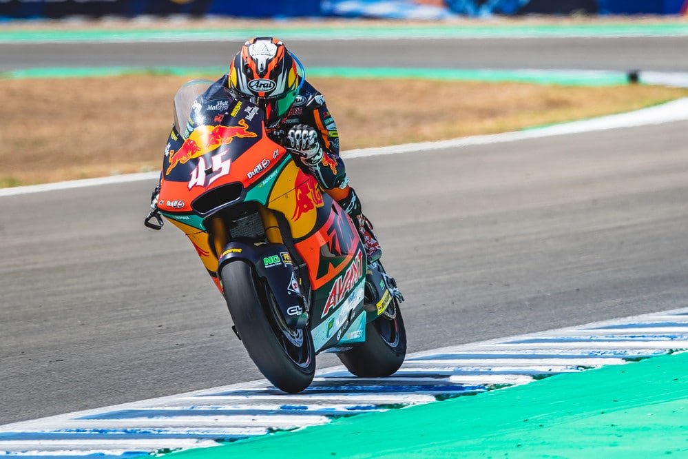 Bo Bendsneyder and Marco Bezzecchi both went down a lap after Chantra in unrelated incidents. Although Jorge Navarro will no doubt see Bezzecchi’s crash in turn ten as karma, it will have been a cause of major frustration for Bezzecchi, who was fighting for the podium when he went down.