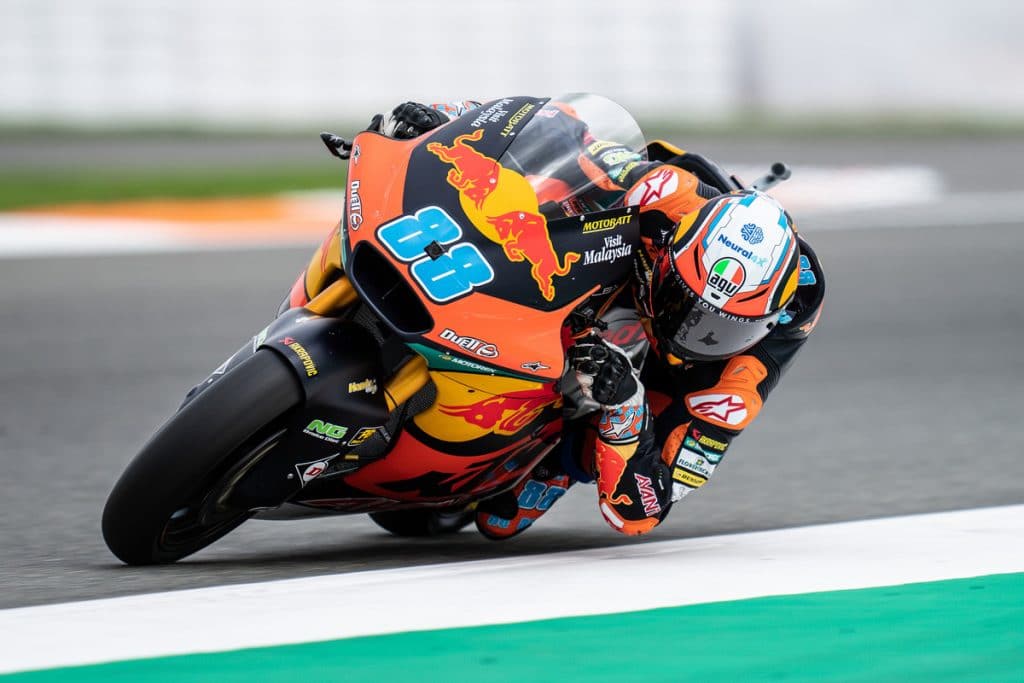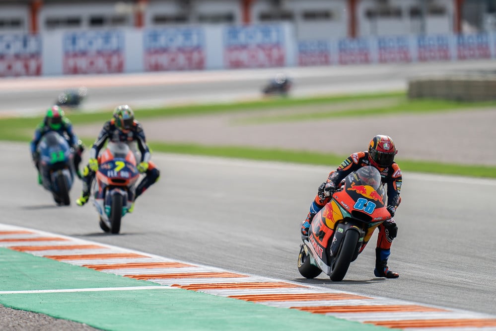 Jorge Martin ahead of Lorenzo Baldassarri, Valencia, 2020. Credit: Polarity Photo.