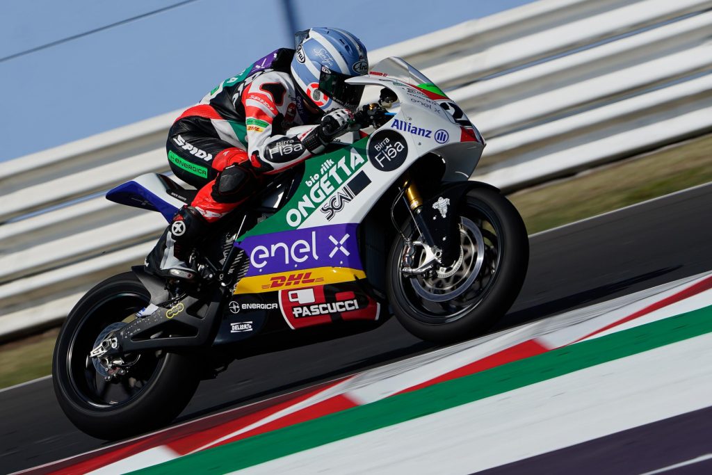 Matteo Ferrari (Trentino Gresini MotoE) was last to take to the track and proved his blistering practice pace. His 1:43.580 was the fastest lap of the session by a good margin and last year’s champion added another E-Pole to his name.