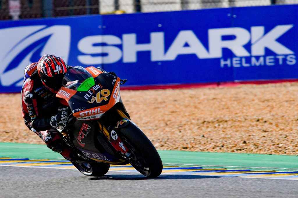 Matteo Ferrari (Trentino Gresini MotoE) stole the holeshot from polesitter Jordi Torres (Pons Racing 40) and led into Dunlop Curve. Drama stroke immediately though when Mattia Casadei (Ongetta SIC58 Squadrocorse) highsided through the Dunlop Chicane, ending his race and any chance for the title he had left.