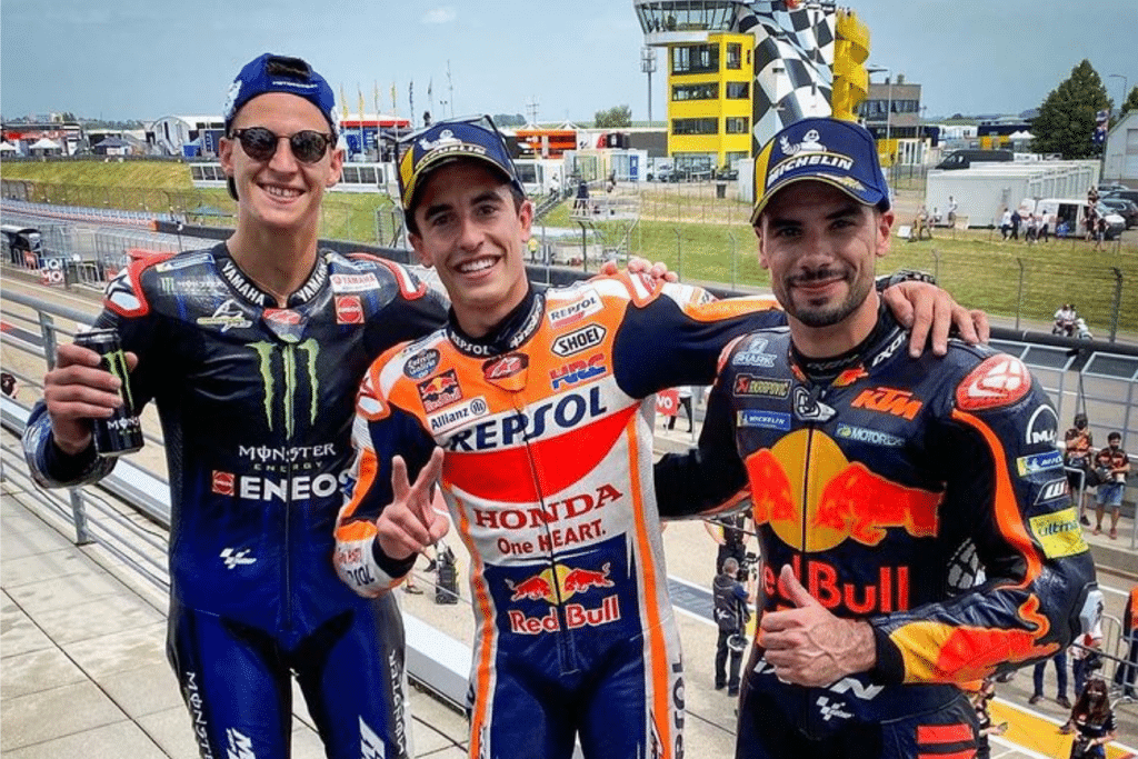Marc Marquez (Repsol Honda Team) took his first victory in 581 days and expanded his unbeaten run at the Sachsenring to 11. Marquez broke early and resisted pressure from Miguel Oliveira (Red Bull KTM Factory Racing) to fight back from the potentially career-ending injury sustained at Jerez last season.