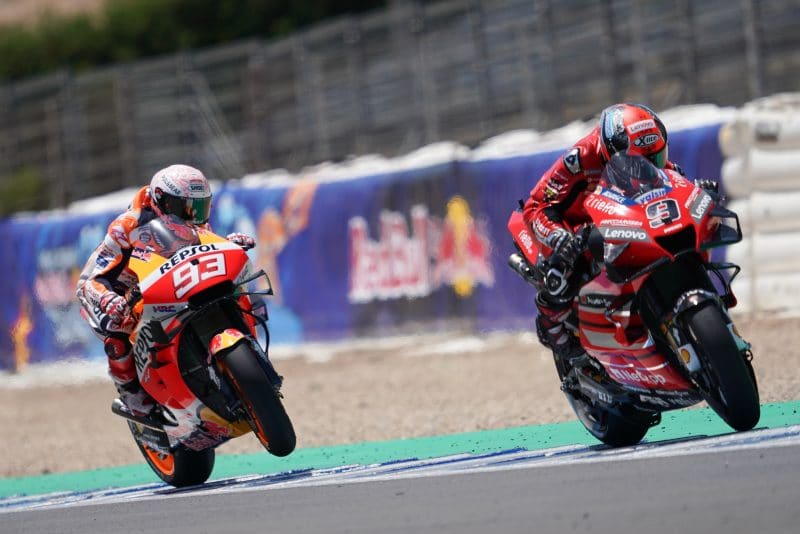 Marc Marquez chases Danilo Petrucci, Spanish GP, 2020. Credit: Honda Racing Corporation.