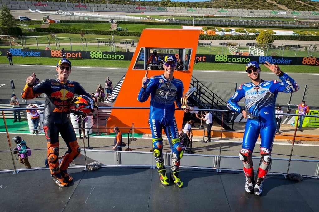 The Spaniard came out top of a duel between the two Suzukis, taking the lead on Lap 17 and not looking back from there. Alex Rins crossed the line in second and secured the first 1-2 for the Japanese manufacturer since 1982. Pol Espargaro rounded out the podium in third.