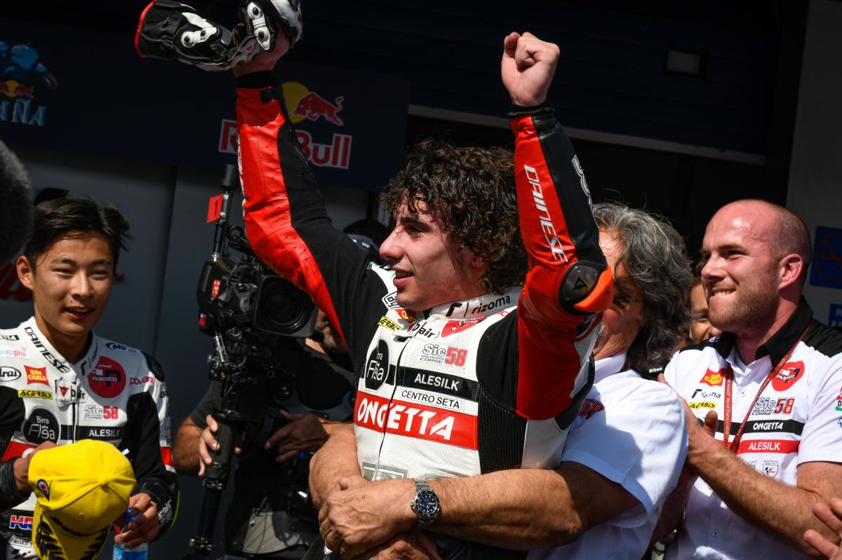 The victory was the first for the SIC58 Squadro Corse team owned by the father of Marco Simoncelli – Paolo. The win comes 15 years after Marco won his first of 14 Grand Prix victories at the same circuit in the 125cc class.Celestino Vietti scored his second ever podium, finishing 3rd in only his 8th Moto3 race.