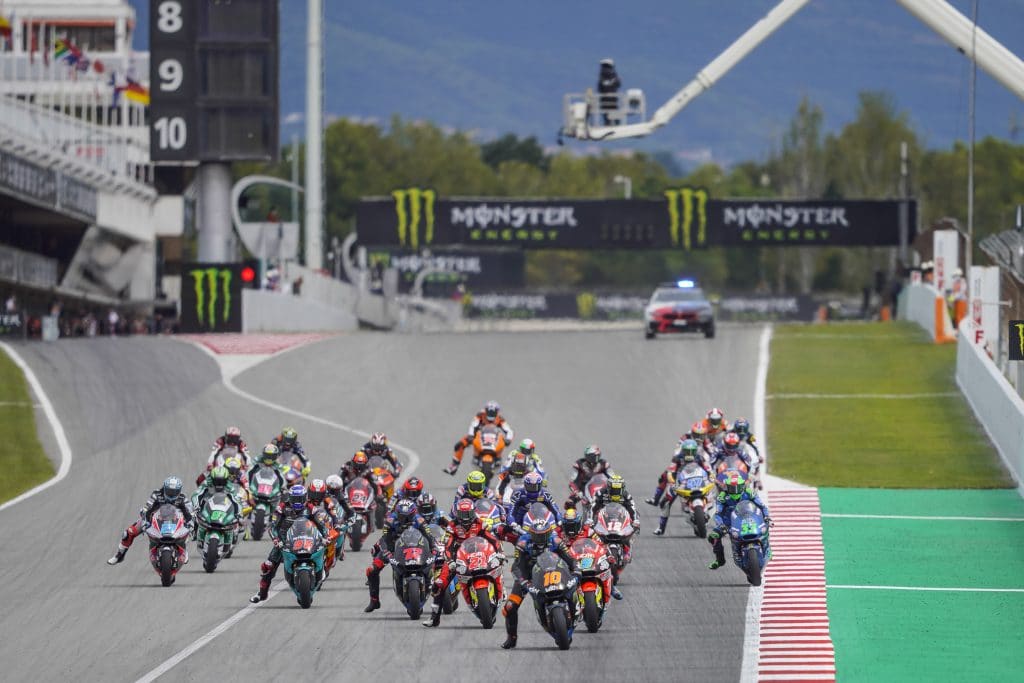 Moto2 race start, Barcelona, 2020. Credit: Milagro/Monster Energy.