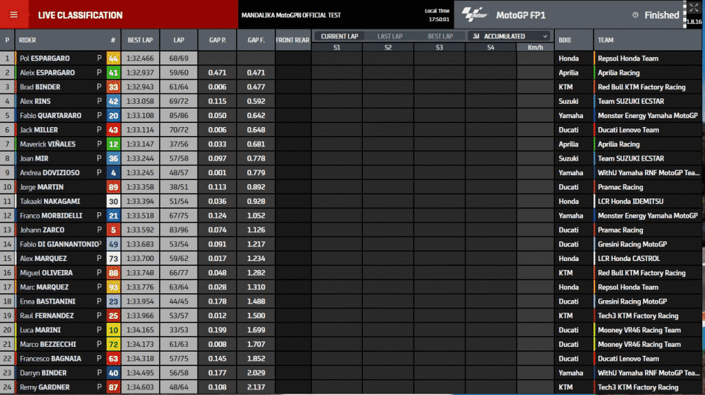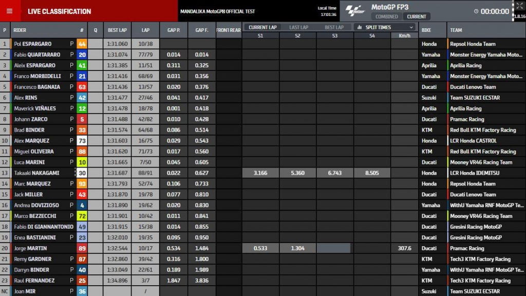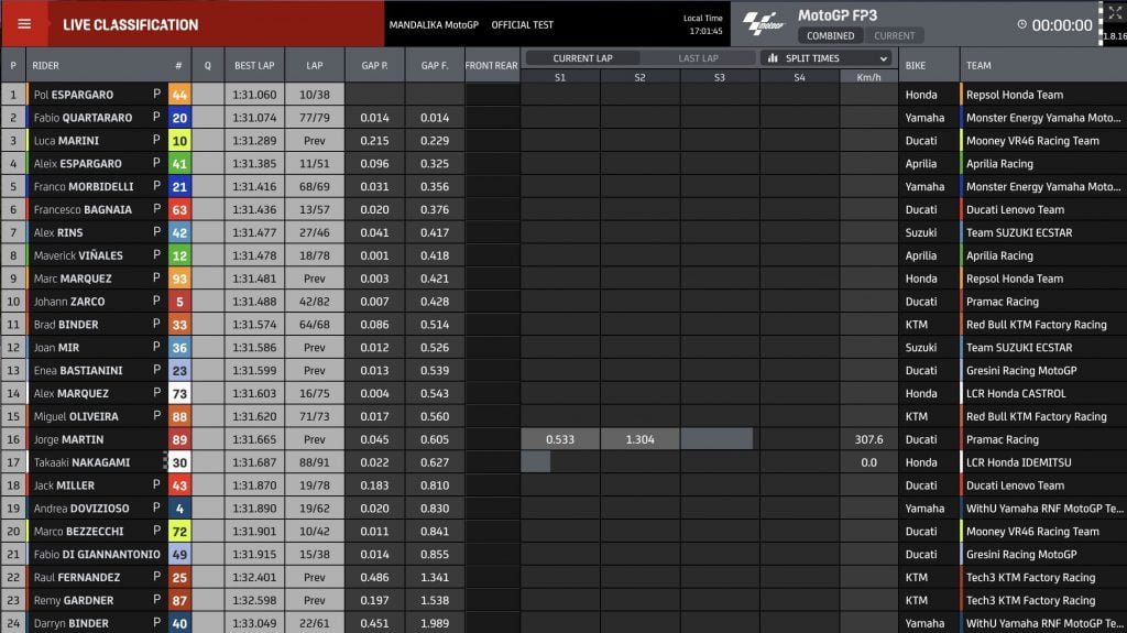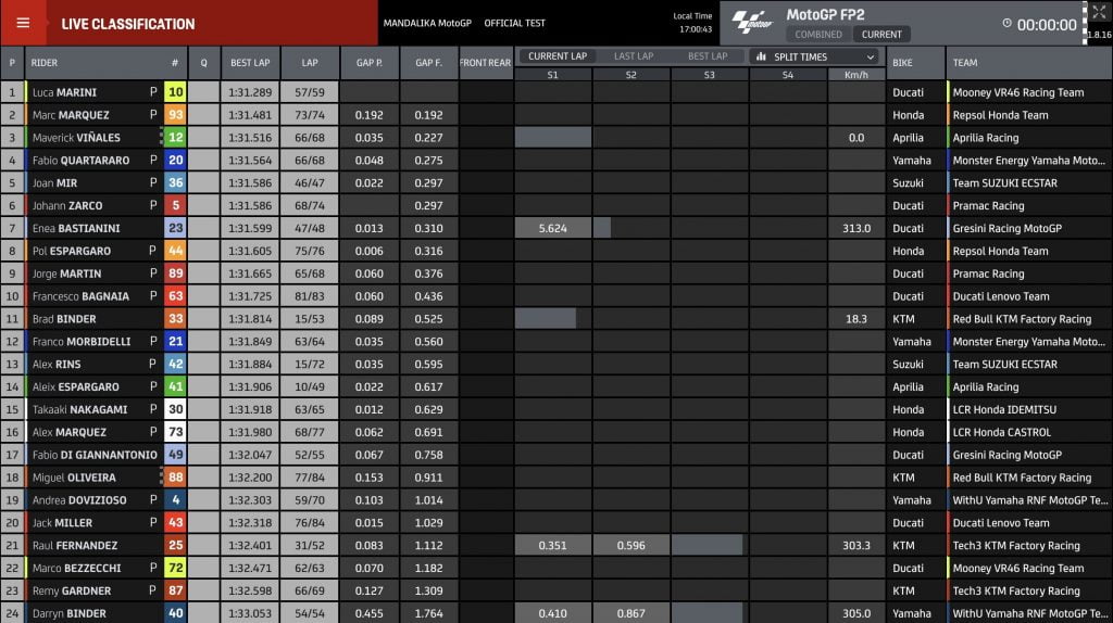Timing screen images: MotoGP.Com