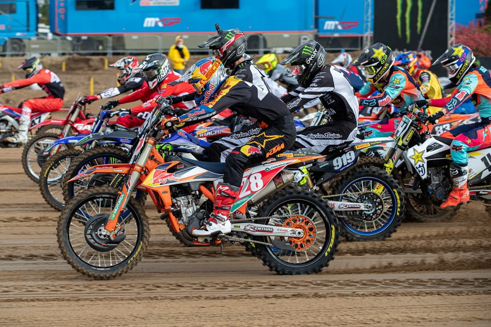 Jago Geerts made the holeshot in the first moto, taking the early lead ahead of Tom Vialle and Roan van de Moosdijk. Thomas Kjer Olsen was fourth for the first half-lap, but a crash for the #19 dropped him out of contention.