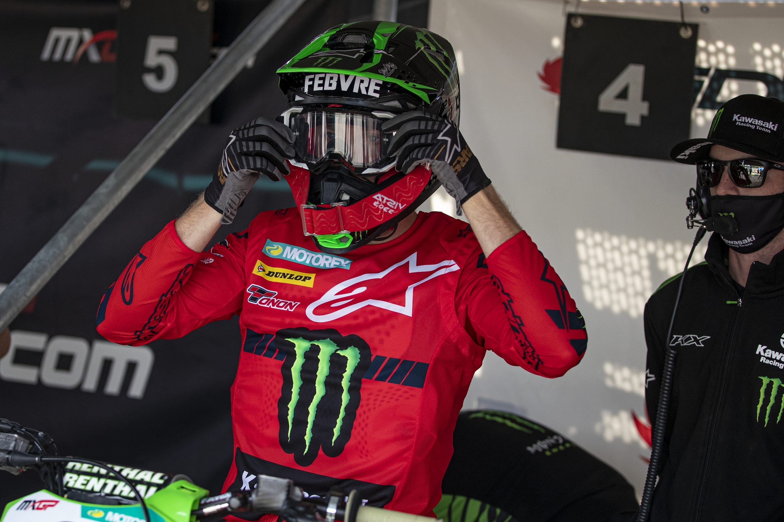 In fact, Febvre would lead from start to finish. For the first two thirds, the Frenchman held off the attention of Tim Gajser, but a crash for the Slovenian in the final third of the race allowed Febvre to escape. The moto win was the #3’s first for Kawasaki, and the overall win that it resulted in was also his first in green. Additionally, it was Febvre’s first overall win since Loket, 2019, and the first for Kawasaki since Clement Desalle won at Orlyonok in 2018.