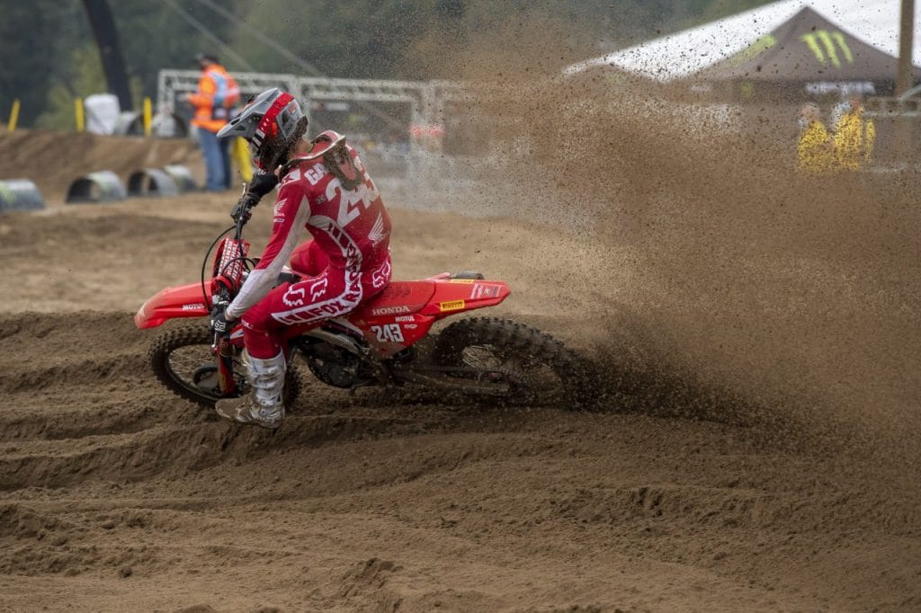 Gajser did not look back from there, and streaked away to take the race two win by 18.7 seconds ahead of Romain Febvre. For Gajser, it was an almost perfect day; operating a level above his competition from time practice until the final lap of the second moto, interrupted only by a crash from which he recovered in that second race.
