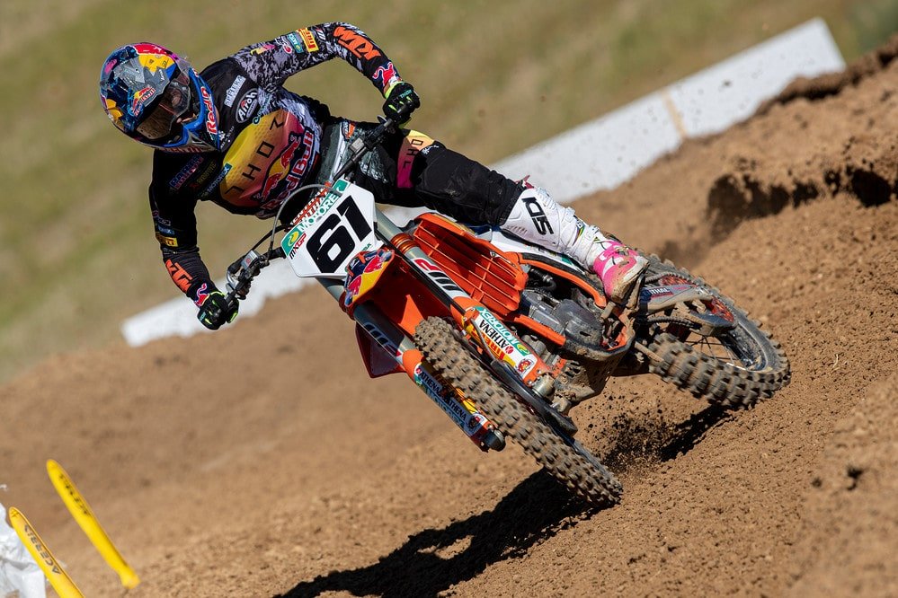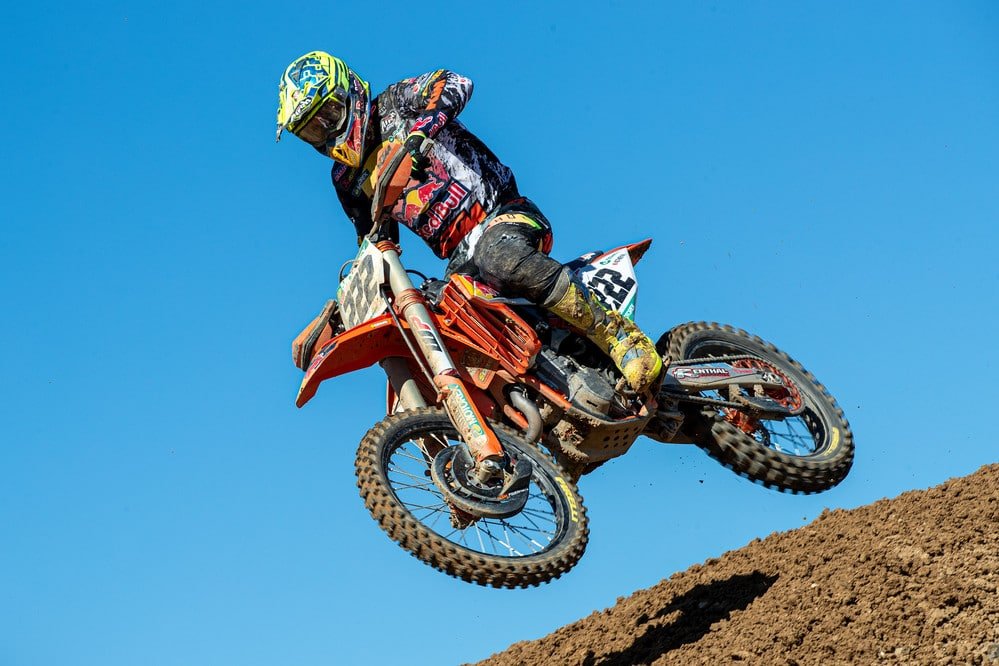 Winning the second moto was enough to give Gajser his second overall win of the season. It was also a big points day for the reigning World Champion as he doubled his lead over Antonio Cairoli in the championship to 48 points.