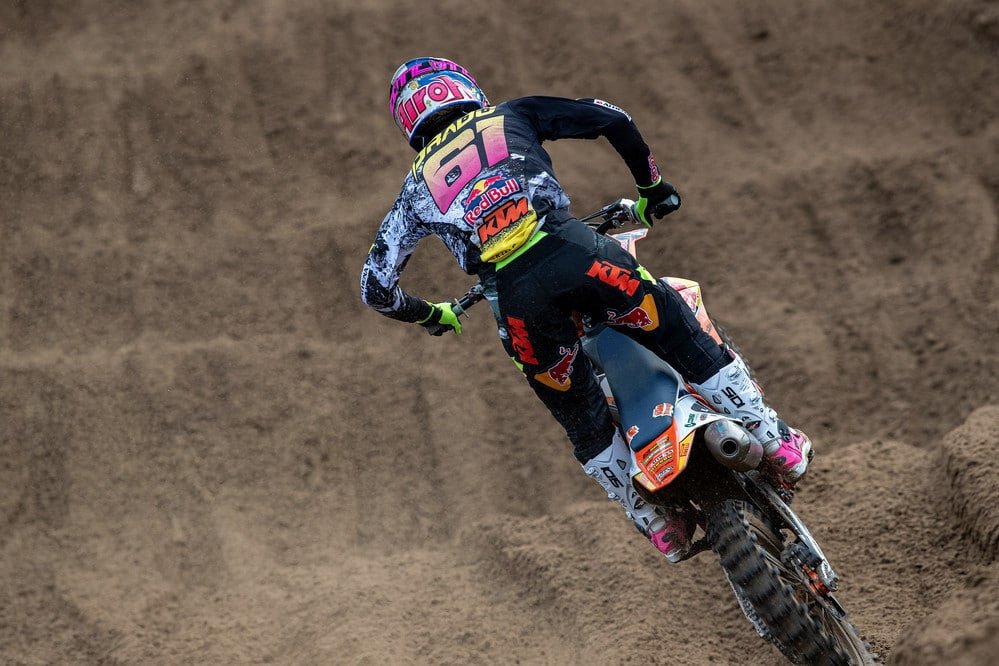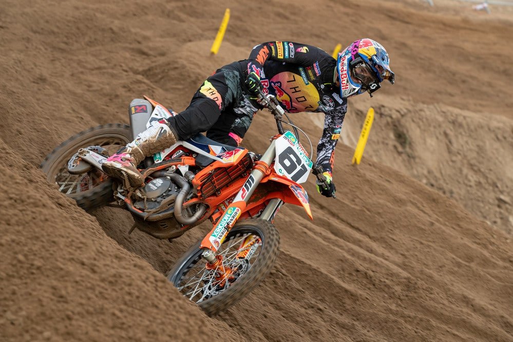 At the front, though, it was a defensive masterclass from Prado who withstood two bombardments from Cairoli to take his fifth moto win of the season. Second place for Cairoli was the first time he had finished in the top three of a moto since he won in the final Mantova race a couple of weeks ago, while third place for Gajser meant the #243 extended his championship lead by seven points across the GP as a whole.