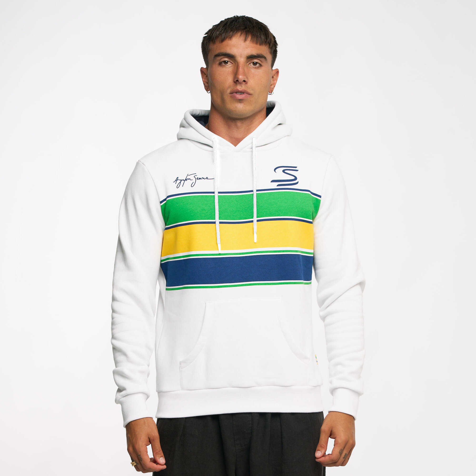 Ayrton Senna Stripe Hoodie – White