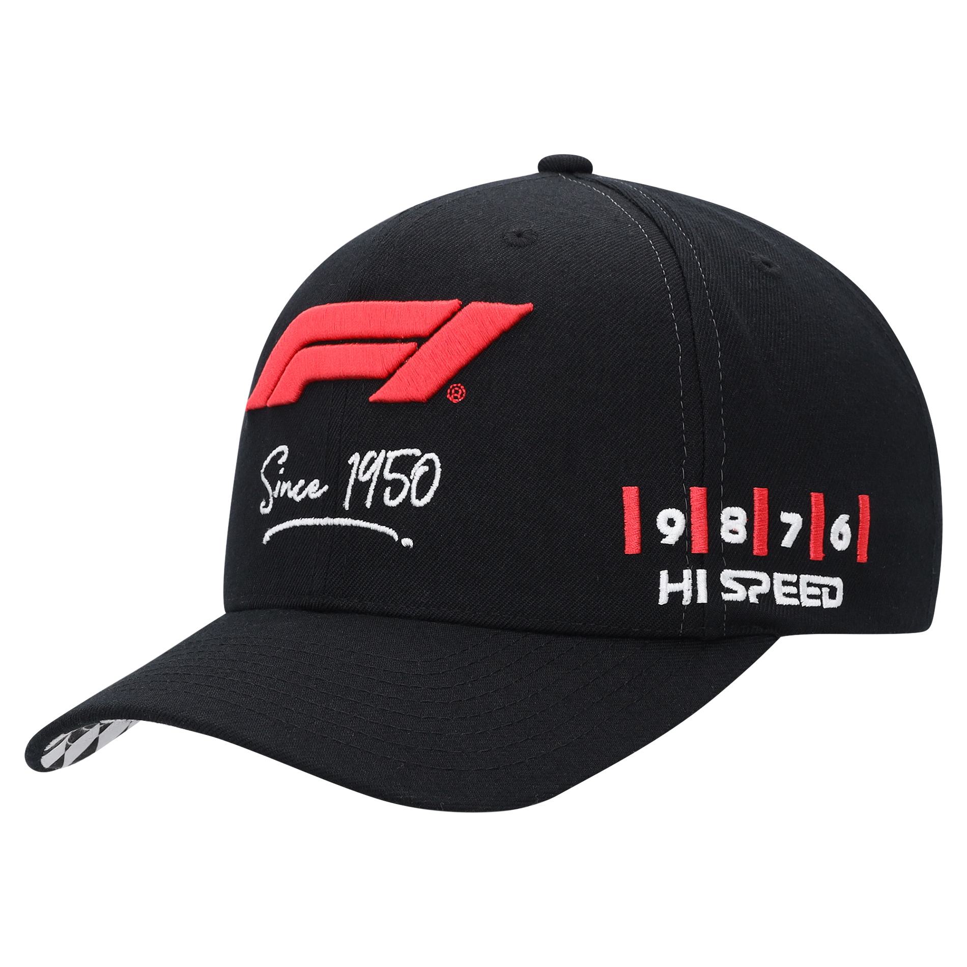 Celebrate F1’s 75th Anniversary with the official Mitchell & Ness collection. This cap has ‘F1 Since 1950’ embroidery detail on the front crown and ‘Mitchell & Ness’ above the rear opening while the brim underside has a graphic of a chequered flag. A classic six-panel construction lends a classic, timeless silhouette that you can wear anywhere.