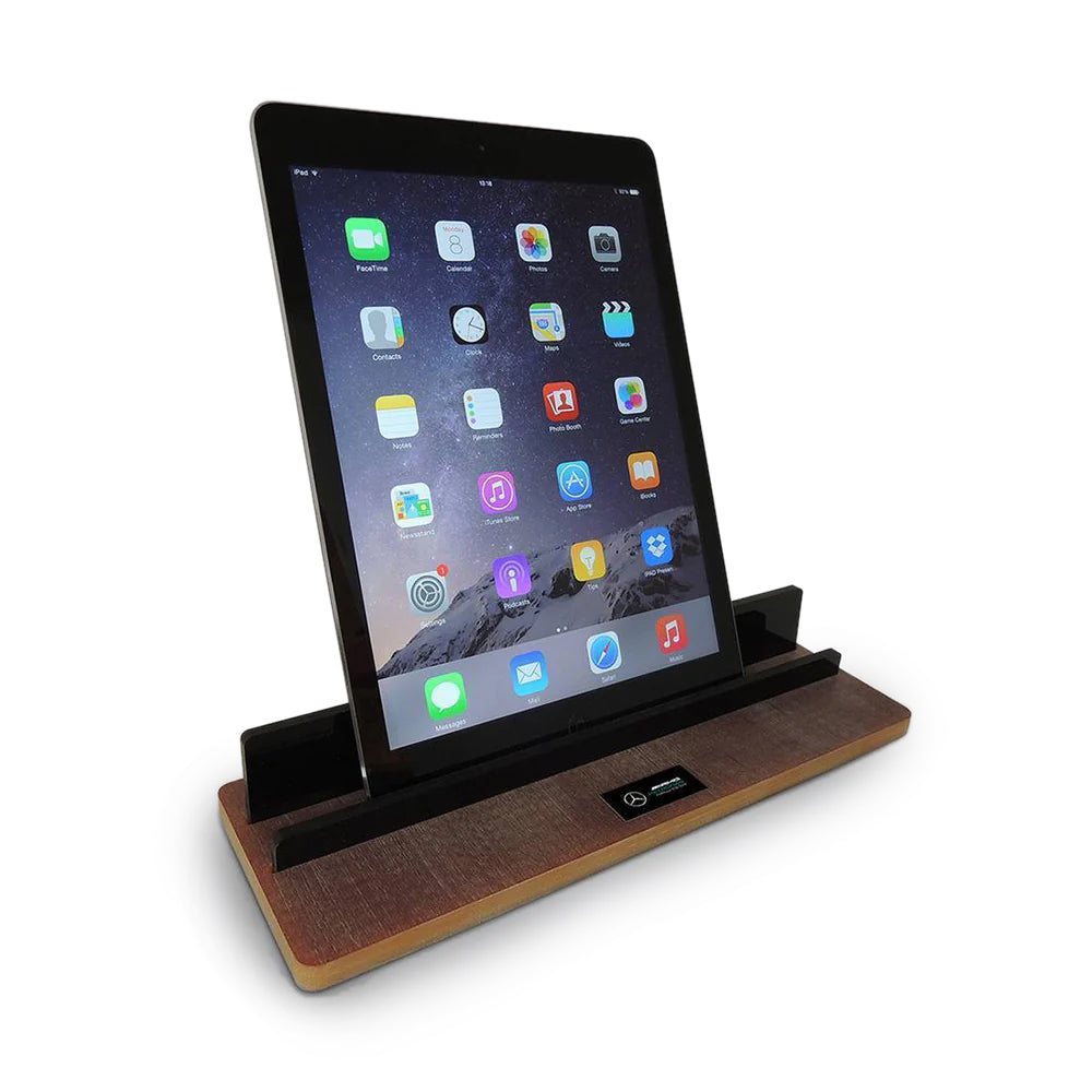 The skid block was part of the MGP-W05 car, raced by Lewis Hamilton in the 2014 season. Retired from racing, our design team have re-styled the skid block into a practical holder for your tablet. This skid block was once attached to the underbelly of the Mercedes-AMG Petronas Formula One Team cars; racing the circuits of the world at over 200MPH! Also known as ‘legality plank’, skid block is the mandatory attachment to the underside of a Formula One™ car. Introduced in 1994 as a safety improvement following Ayrton Senna’s death, the plank is fitted beneath the central plane of the car. It is designed to restrict the minimum height and prevent taking corners at dangerously high speeds. Retired from racing, our design team have re-styled the skid block into a practical holder for your tablet. Smooth to touch and a good weight to safely support your gadgets. The natural colours of the skid block are complemented with black acrylic pieces to support your