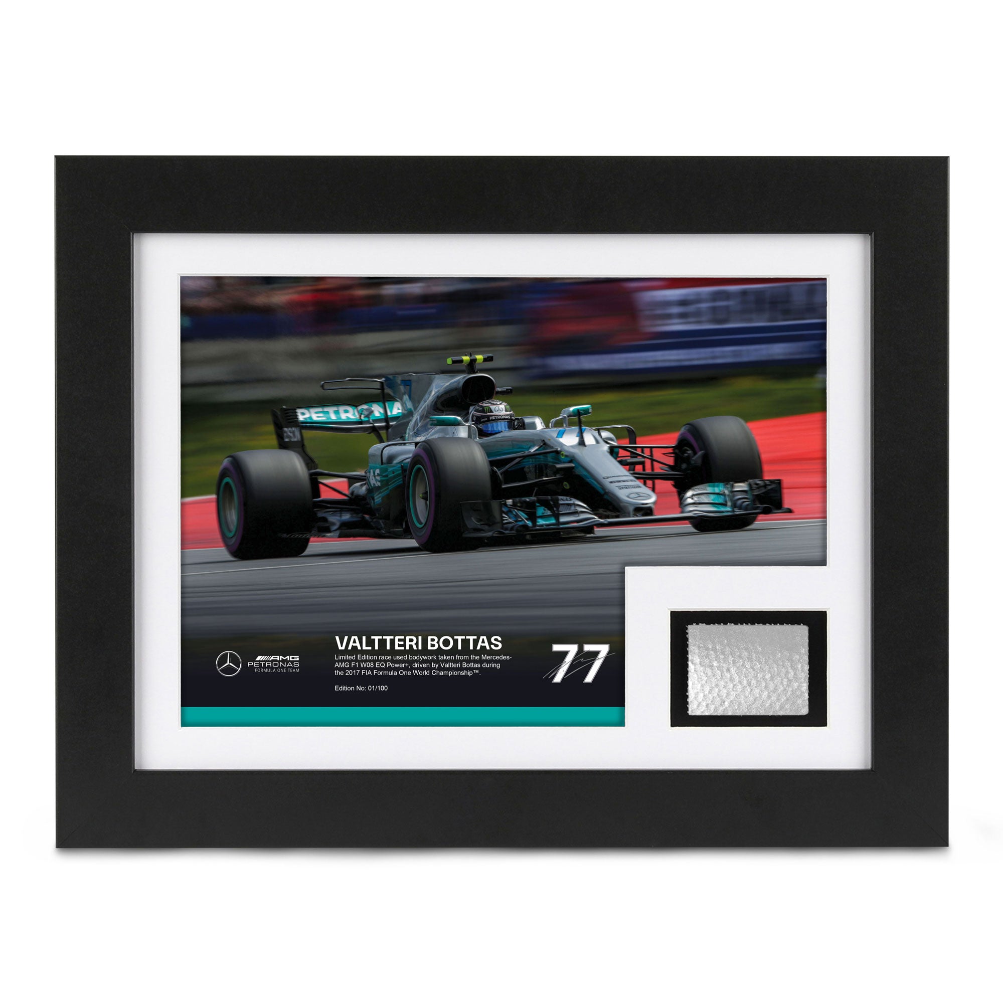 At the start of the 2017 season Bottas moved to the Mercedes-AMG F1 Team. He seemed to settle into life very well at his new team very quickly, taking a podium in the opening race of the 2017 season. You can own a piece of this sensational season with a real piece of Bottas’ Mercedes-AMG WO8, a square that has been hand-cut from the bodywork on his car. This piece has been a framed alongside a picture of the race-winning Finnish driver as he tackles the circuits during the season. Finnish drivers have an incredible record in F1 – even though there have been less than 10 Finnish drivers in F1, the small Nordic nation ranks an incredible 6th on the list of all-time wins. They may not produce many F1 drivers, but they do produce some great ones! It didn’t take long for Valtteri to join this list – his first win came in the fourth round of 2017 at Sochi! The opening rounds of the season made it obvious that there was a championship fight between Ferrari &