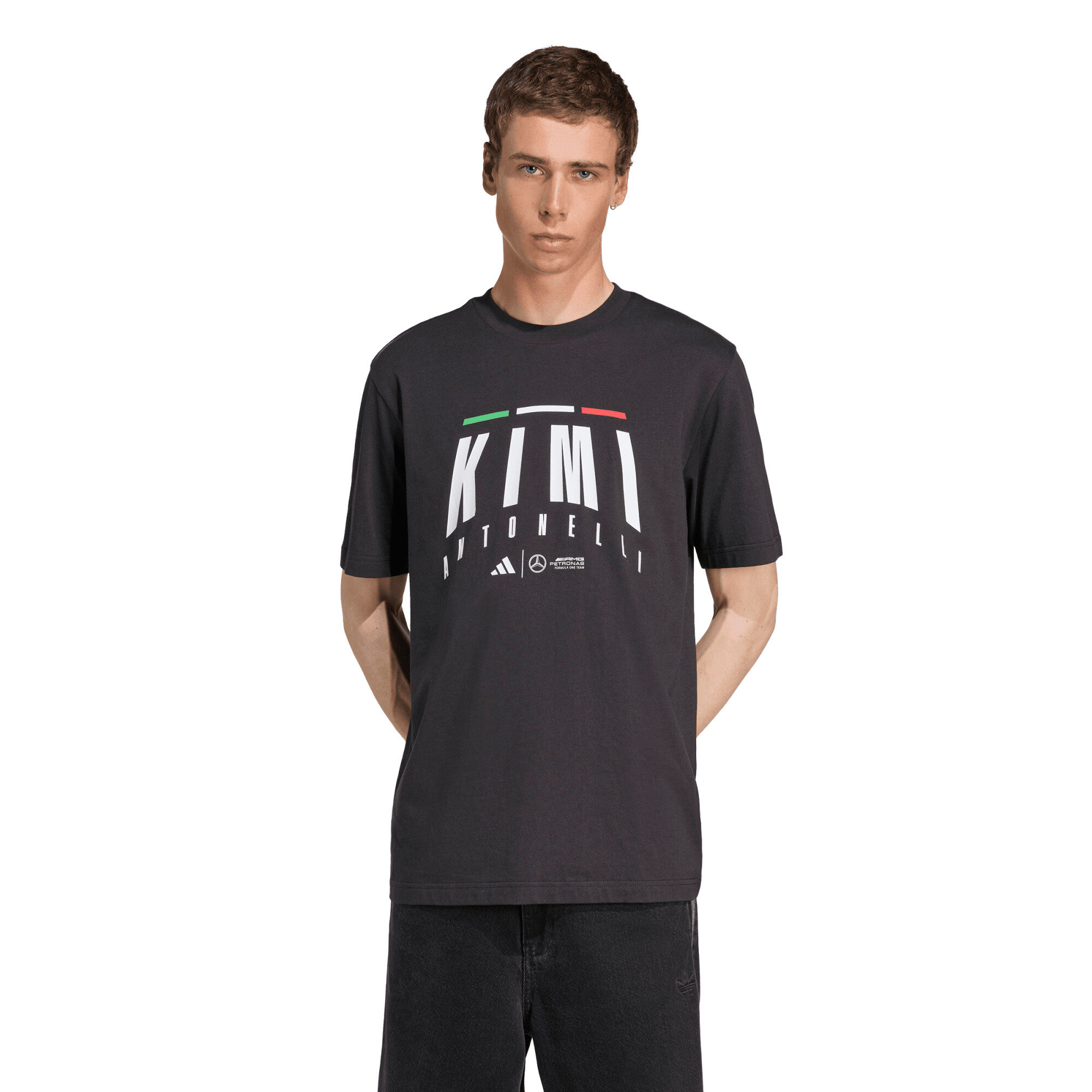 Rep your favourite driver in this t-shirt from adidas Motorsport. The classic-look crewneck and all cotton build keep you comfortable whether you’re spending the day at the track or watching the race from home. Mercedes – AMG Petronas Formula One Team branding and a Kimi Antonelli on the front provide a signature finish.