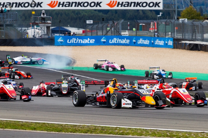 The incident brought out the safety car, which allowed Ticktum to close up on Ralf Aron for 3rd, despatching of the Estonian brilliantly round the outside of turn 1. Aron was then pounced on by Enaam Ahmed, as he was slow following the battle with Ticktum, dropping him to 5th. Behind Aron in 6th had been Artem Petrov. The Russian had snuck through the chaotic turn one but was slapped with a drive-through after jumping the start, letting Marcus Armstrong claim 6th having started 18th due to an engine penalty. Despite the excitement of the first lap, the race soon turned static with the Nurburgring Sprint Circuit proving nearly impossible to overtake on.