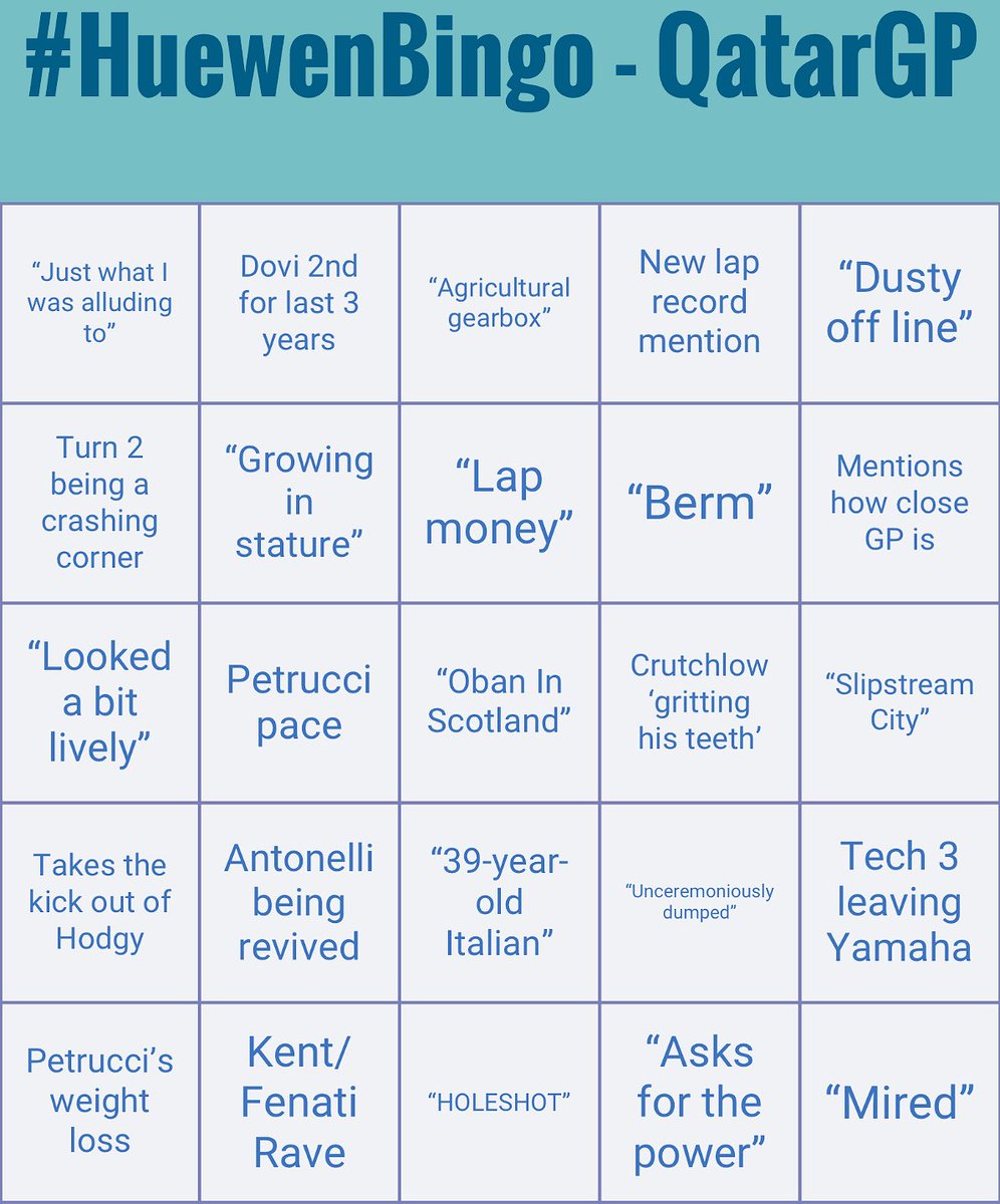 We have mentioned before on #TheSuperbikeShow that #HuewenBingo is available at all MotoGP weekends. Well, here it is… #QatarG...