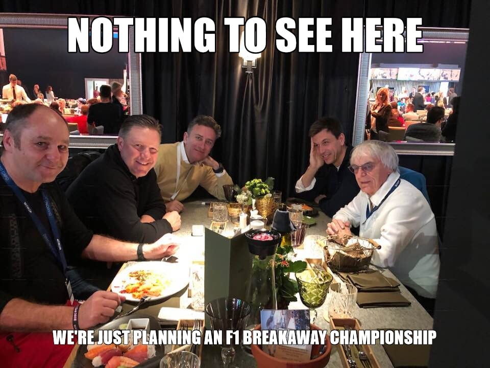 McLaren and boss of the world Zak Brown posted this little nugget online this week with the caption  “Interesting lunch here in Kitzbuhel  with Bernie, Toto, Alejandro and Gerhard”   Hmmm, could they be planning something like an F1 breakaway championship, installing louder engines and getting rid of Halo’s? and would they have your support?  hmmmm.