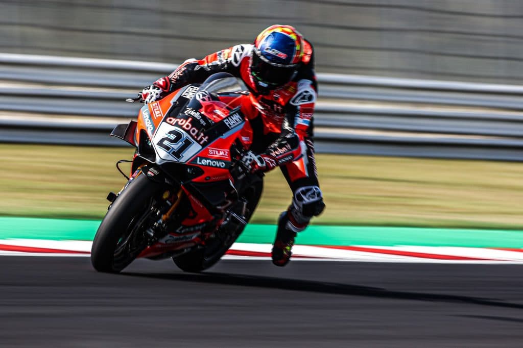 The Italian’s pace was strong enough to put a couple of bike lengths between himself and his opponents while the fight for positions became frantic behind him. Rea prevailed to complete the opening lap in second ahead of Redding and Razgatlioglu.