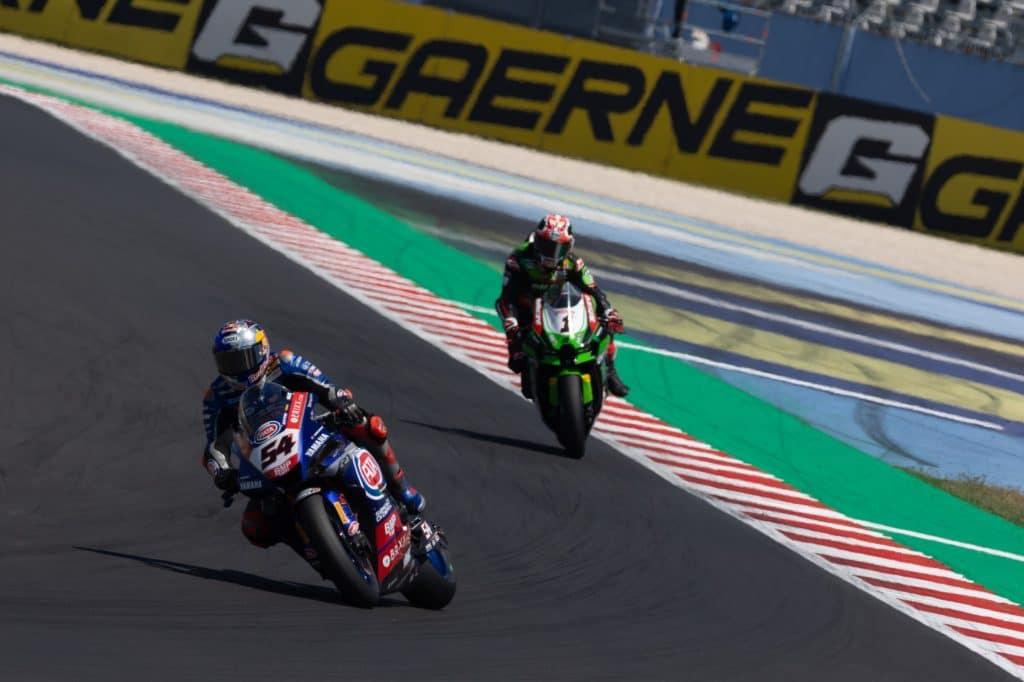 Rinaldi and Razgatlioglu largely cancelled each other out over the track with the Ducati stronger at corner exit while the Yamaha had an advantage at corner entry. Razgatlioglu eventually caught his opponent by surprise and overtook under braking at Carro on Lap 8.