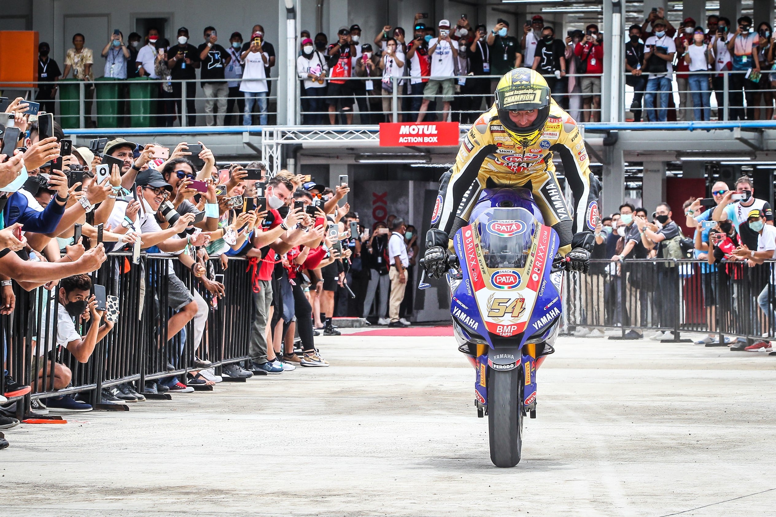 Toprak Razgatlioglu (Pata Yamaha with BRIXX WorldSBK) clinched the 2021 WorldSBK title at the brand-new Pertamina Mandalika Circuit in Indonesia. The season finale was cut short due to heavy rain that prevented track-activity on Saturday and reduced Race 2 to a 12-lapper.