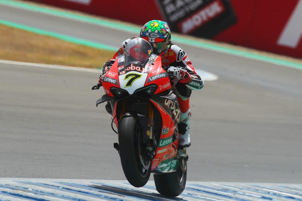 The rookie led for the majority of the 20-lap race and controlled his advantage out front. Behind him Chaz Davies took his first podium of the year and secured Ducati’s first one-two finish since 2012. Toprak Razgatlioglu completed the rostrum in third.