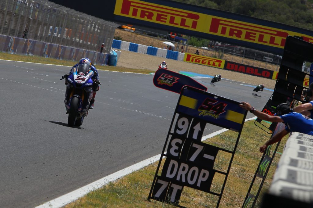 Scorching temperatures at the Circuito de Jerez – Angel Nieto caused many riders to struggle for grip. Particularly reigning world champion Jonathan Rea had visible trouble controlling the front of his Kawasaki.